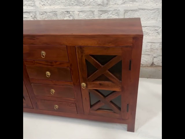 Credenza in legno massello con vetri