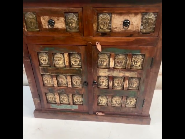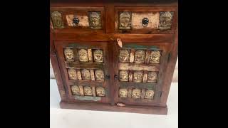 Credenza indiana con decori Buddha in ottone
