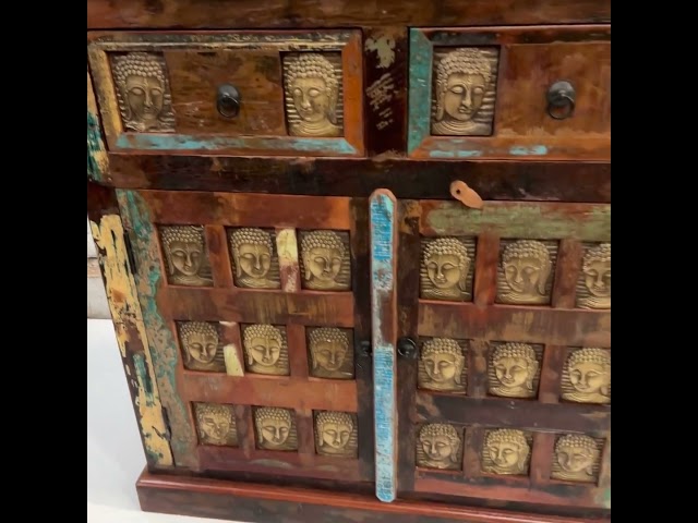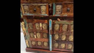 Credenza indiana con decori Buddha in ottone